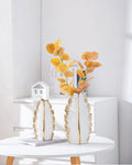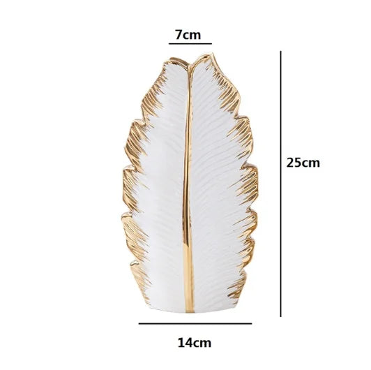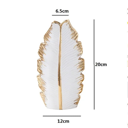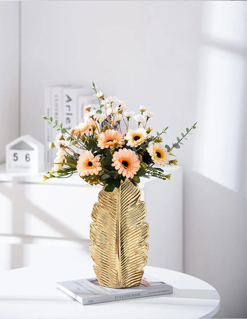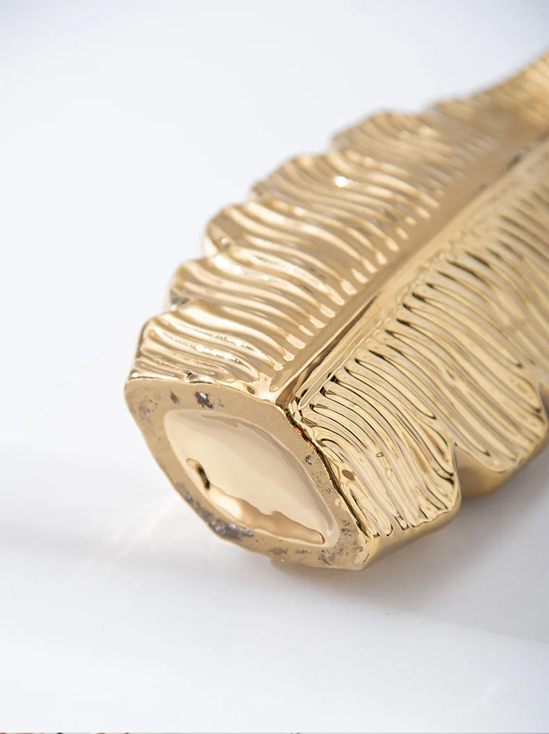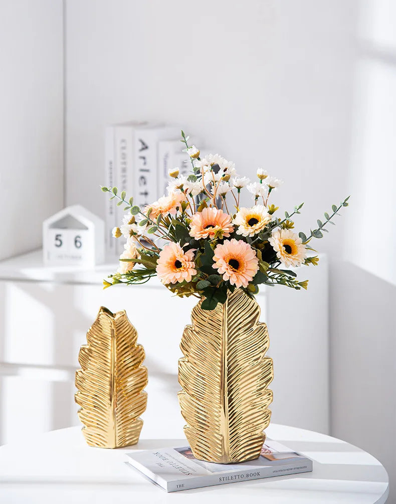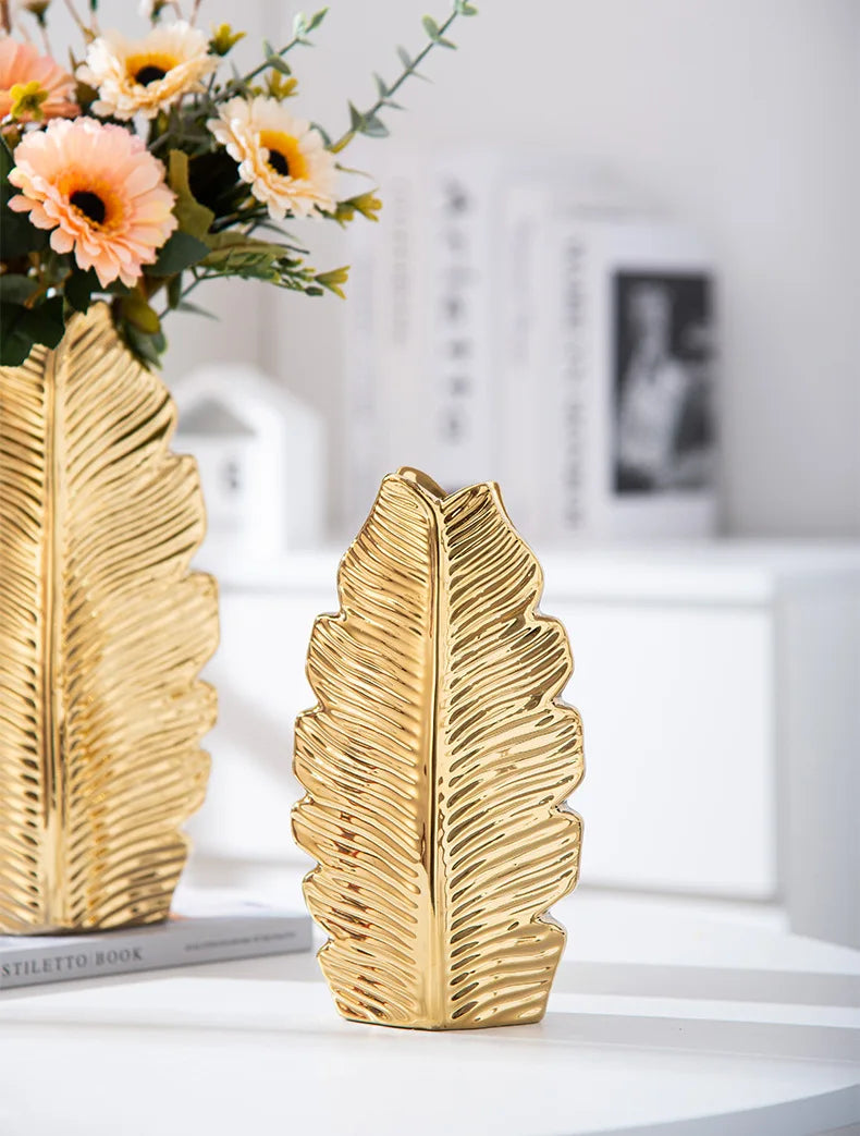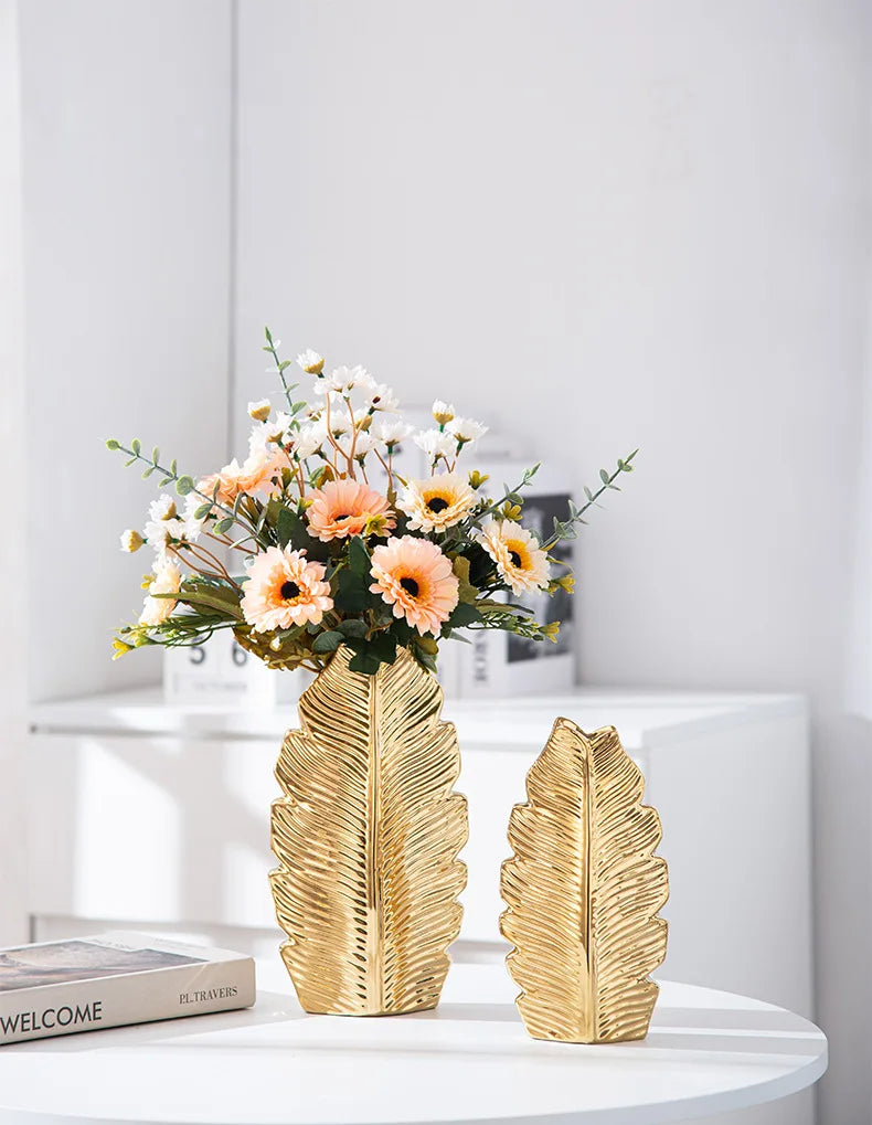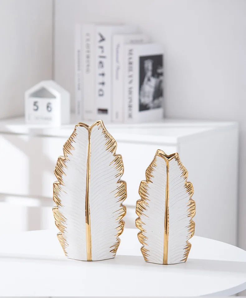 2Pcs Nordic Black Gold Ceramic Leaf Vases – Modern TV Cabinet Decor