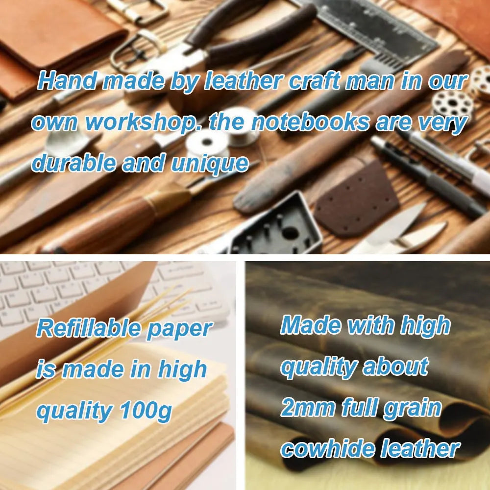 Capture your memories with this handmade, high-quality leather journal — perfect for travel, business, school, or daily notes. Crafted from genuine full-grain cowhide, it becomes even more beautiful with use over time.