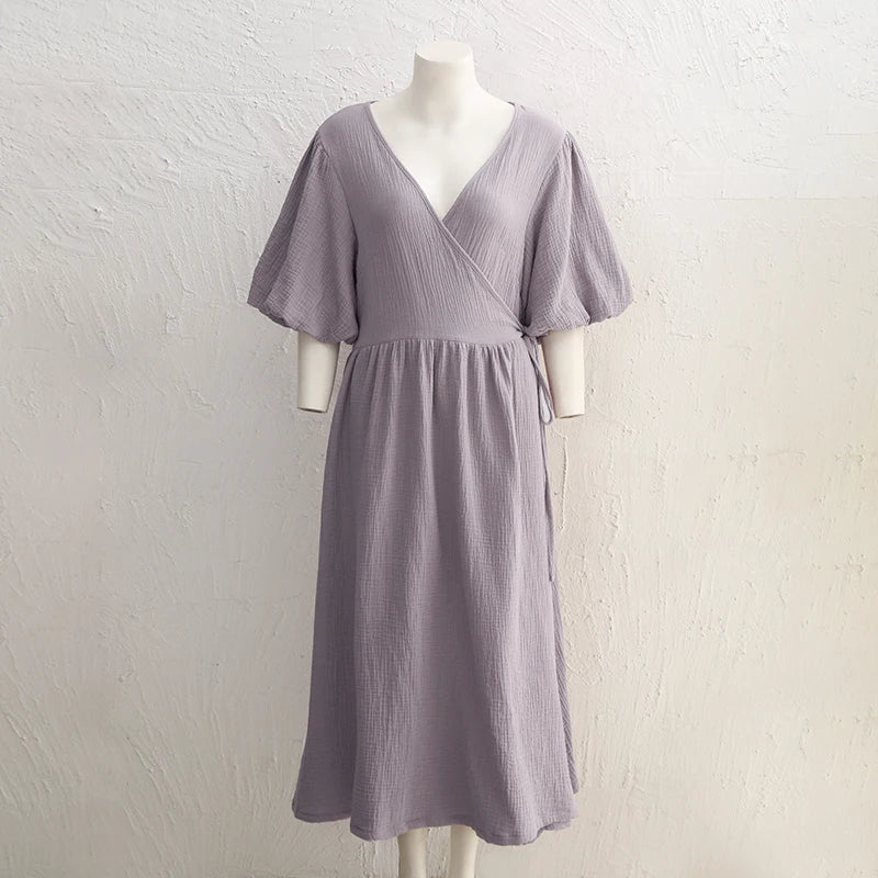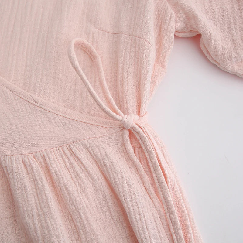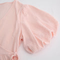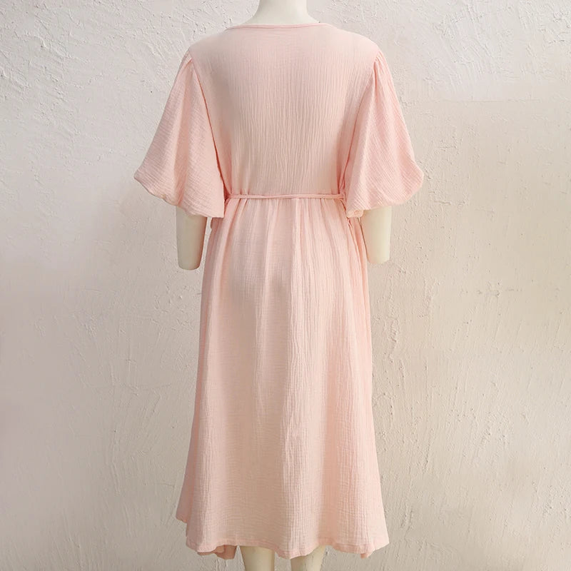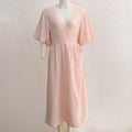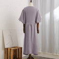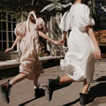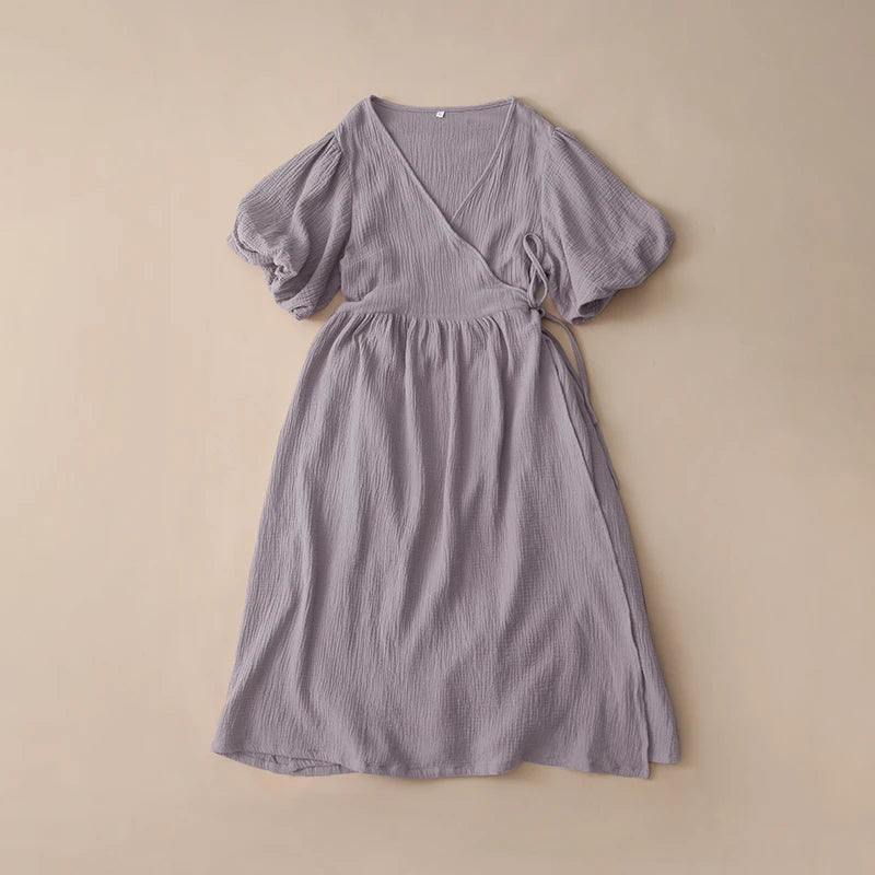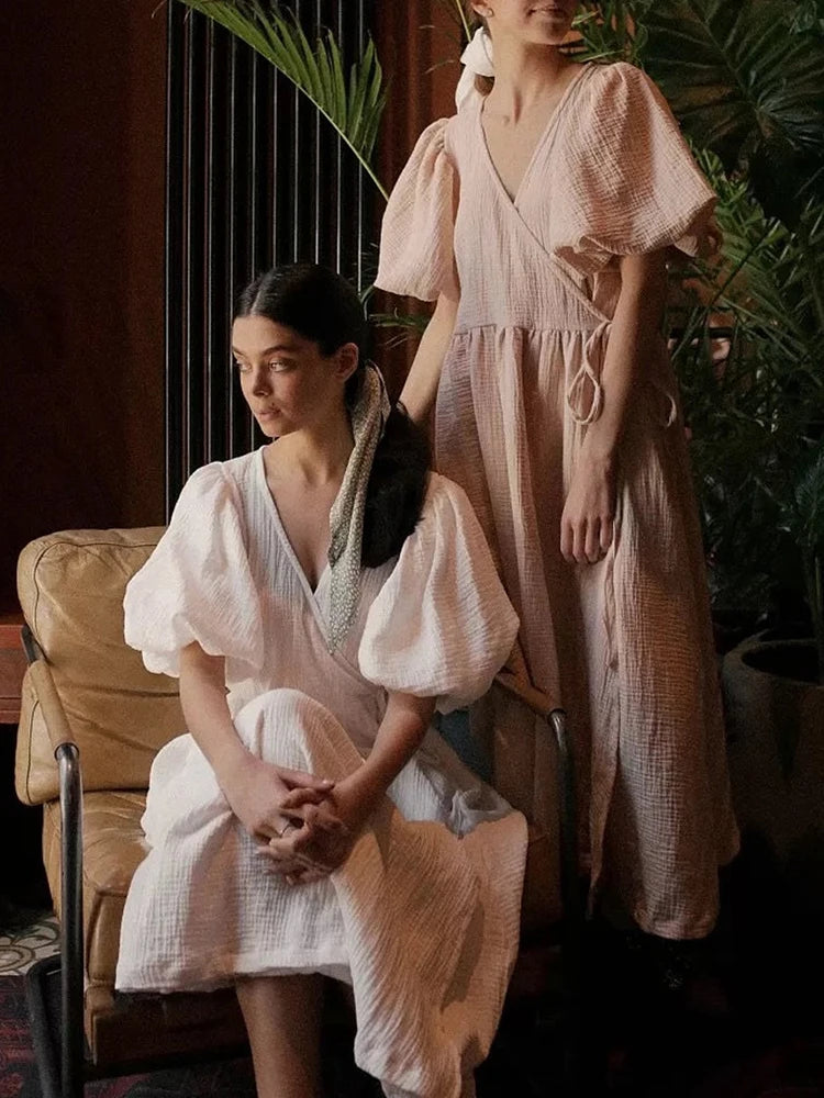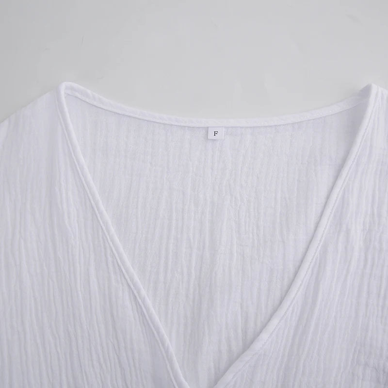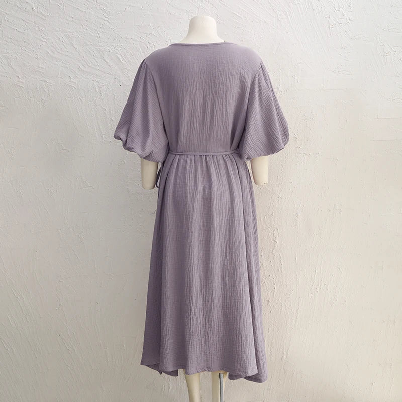 Women's Vintage V-Neck Puff Sleeve Lace-Up Maxi Dress in Elegant White