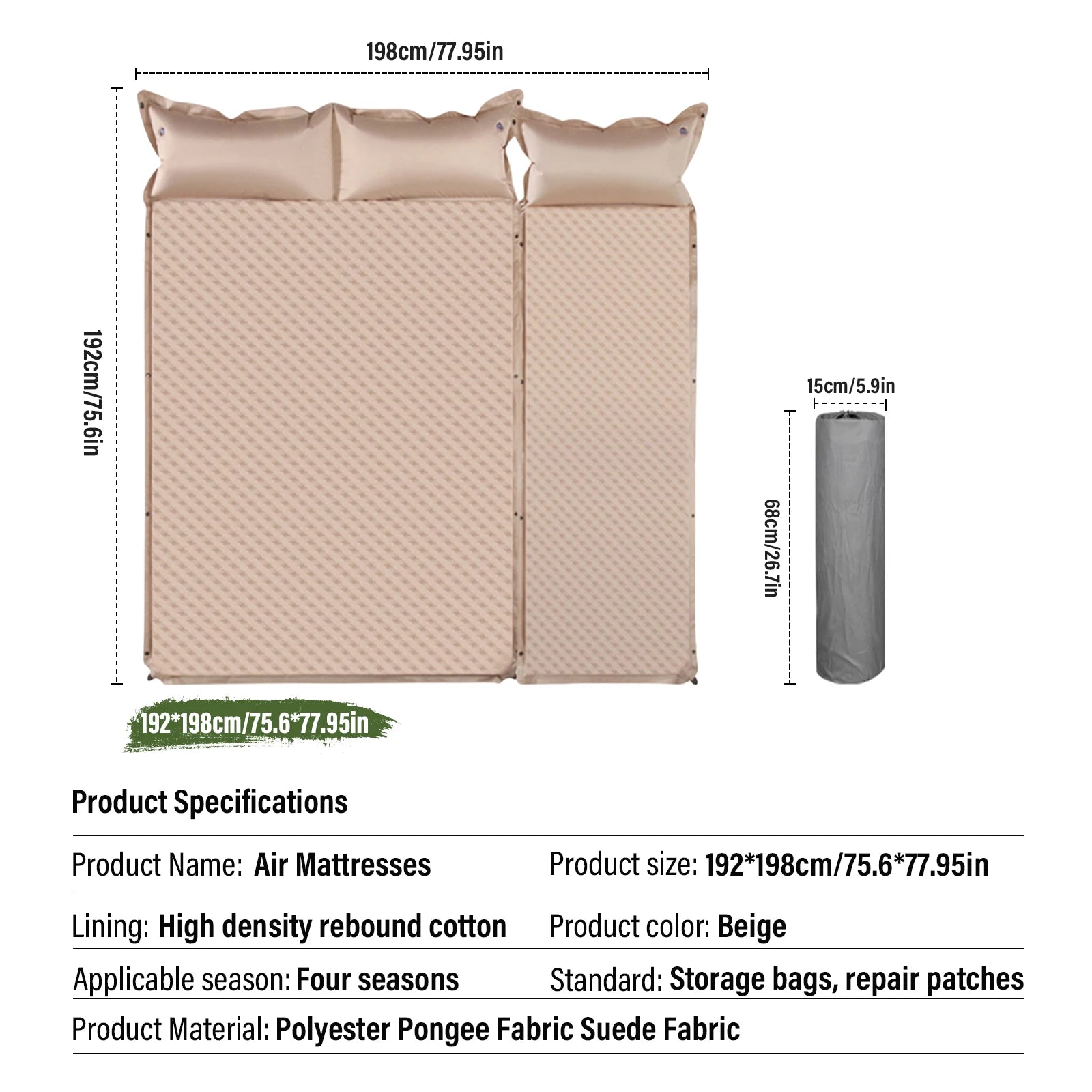 Easy Inflation and Deflation: Inflate the mattress easily by simply opening the air nozzle, and let it inflate automatically. For deflation, roll it up and press out the air, making it convenient for quick packing when you're on the go.