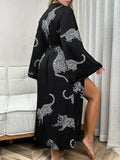 Cheetah Print Satin Bathrobe with Belt