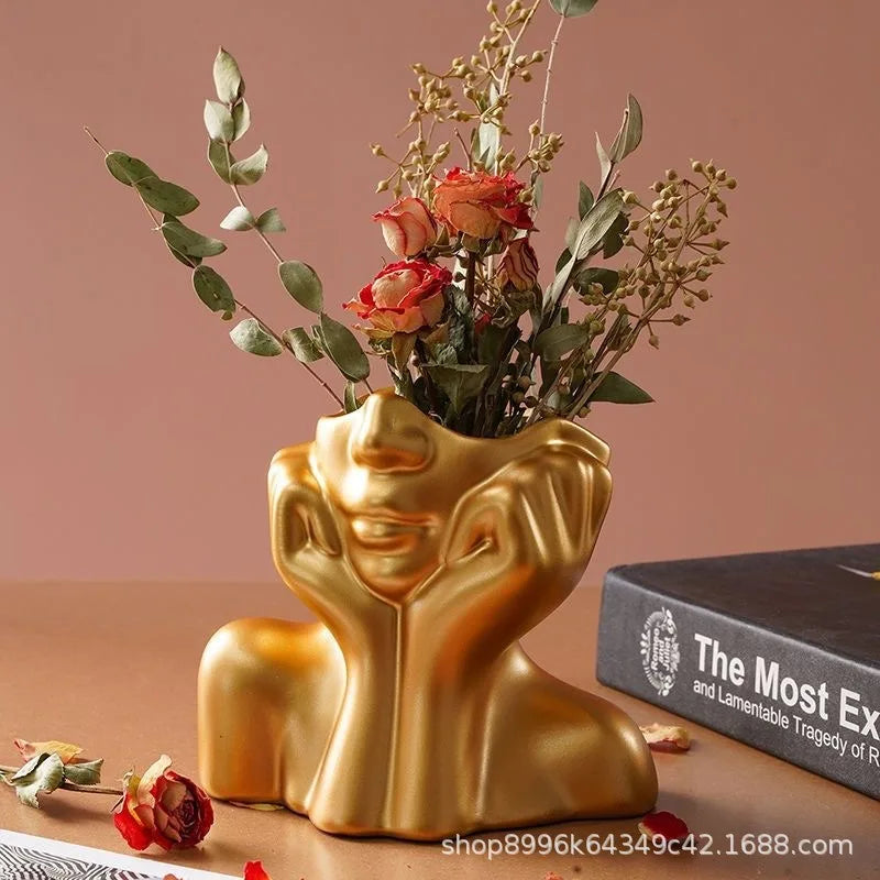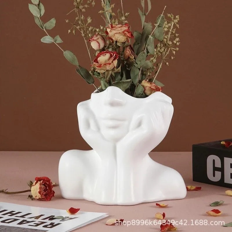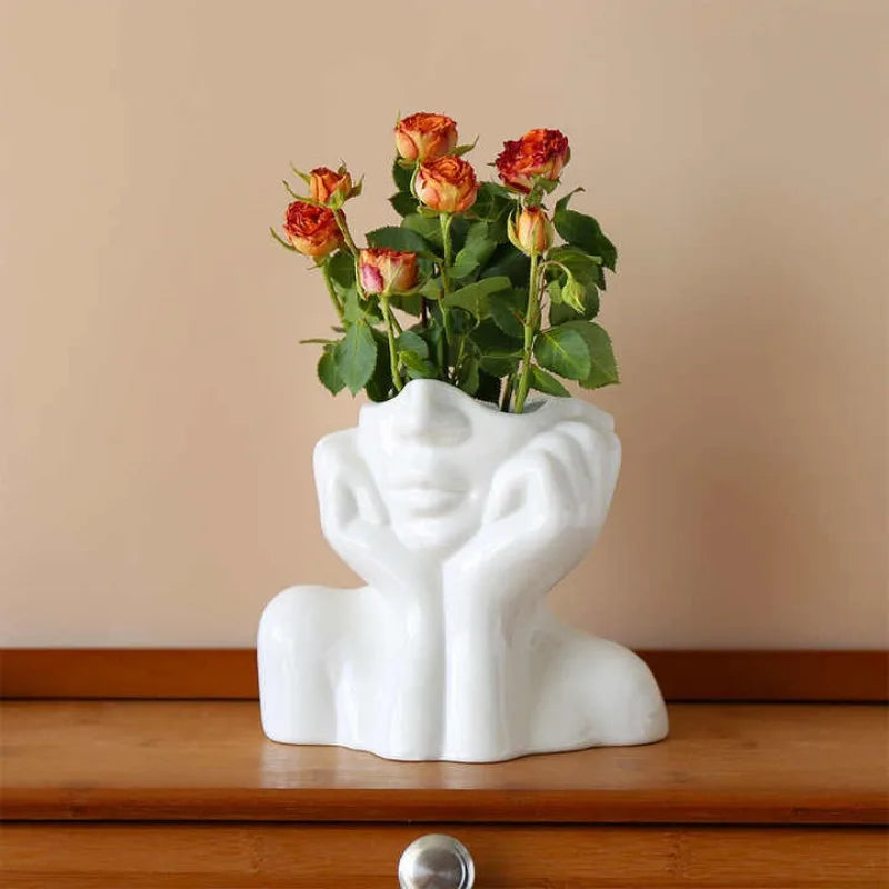 Modern Ceramic Human Face Vase – Nordic Art Head Plant Pot for Living Room Decor