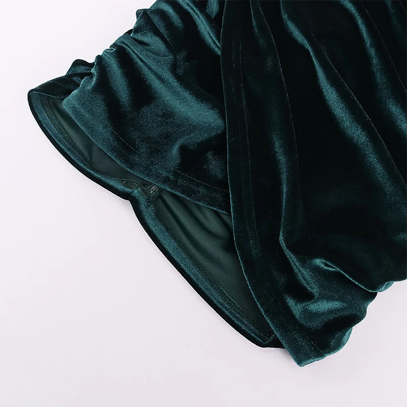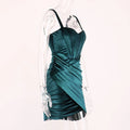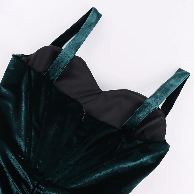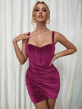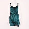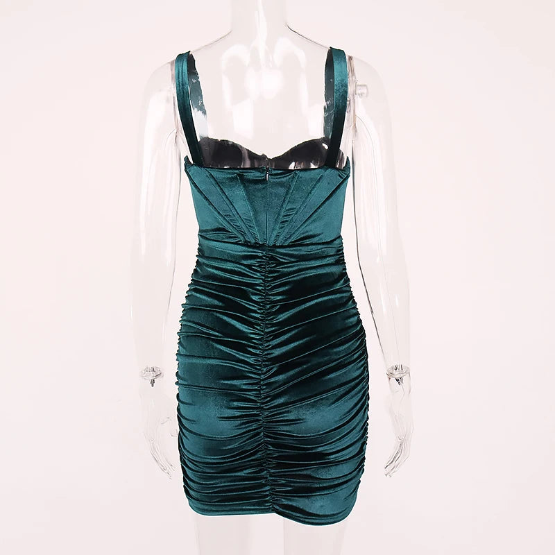 Summer Velour Mini Dress – Ruched Boned Design with Spaghetti Straps & Zipper