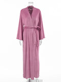 Women's Loose Knit Bathrobe – Long Sleeve Solid Color Nightgown