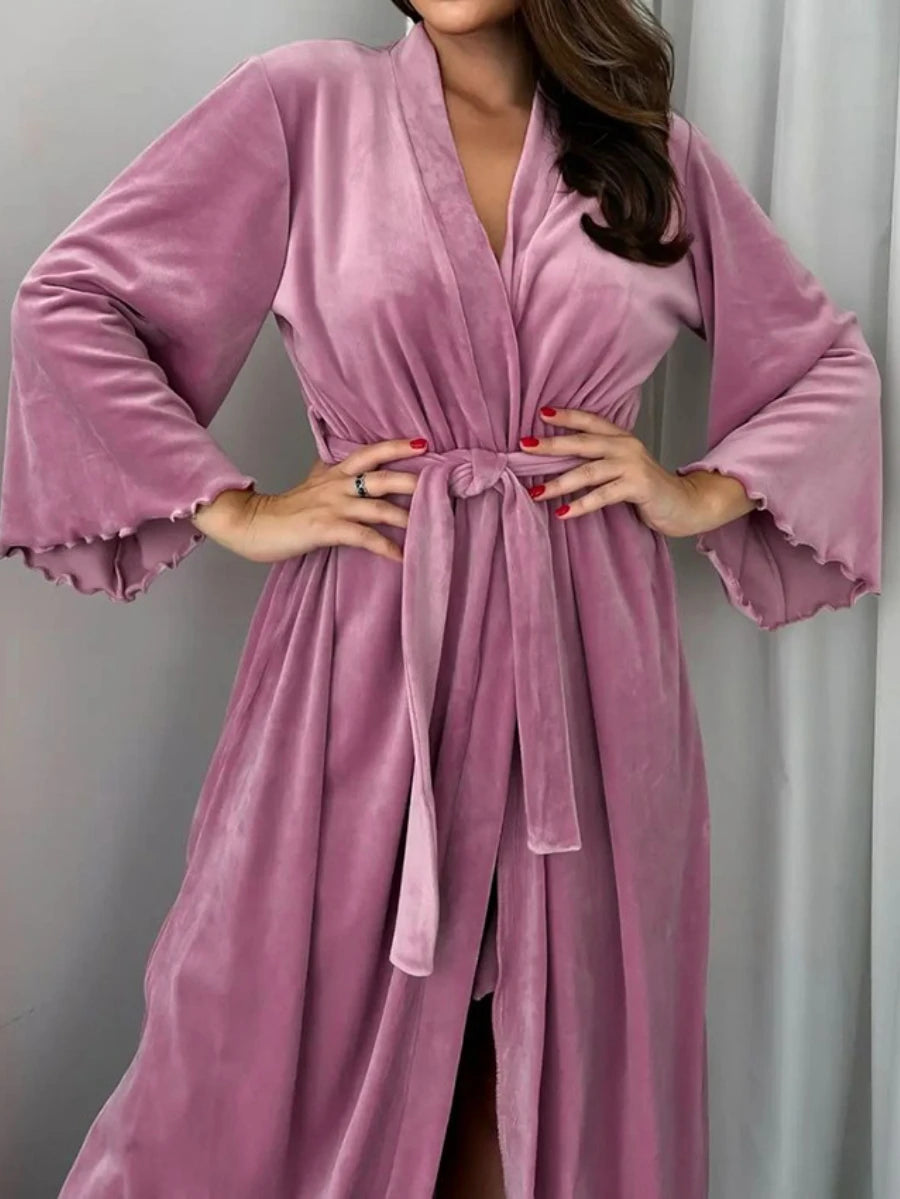 Whether you're relaxing at home, having a cozy day off, or looking for a chic layering piece, the Women’s Ankle-Length Corduroy Robe is a must-have addition to your autumn wardrobe.